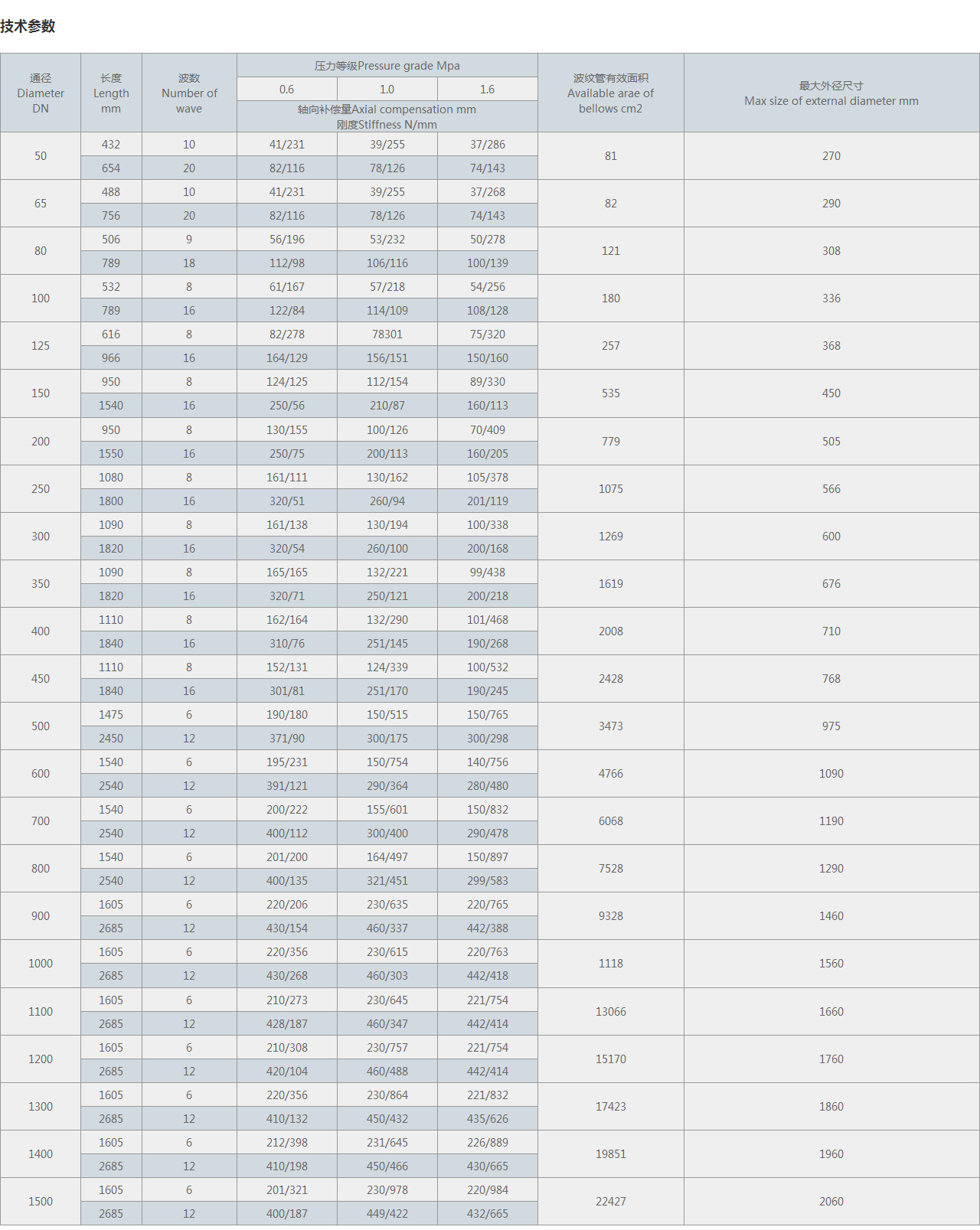 軸向補償量Axial compensation mm 剛度Stiffness N/mm |