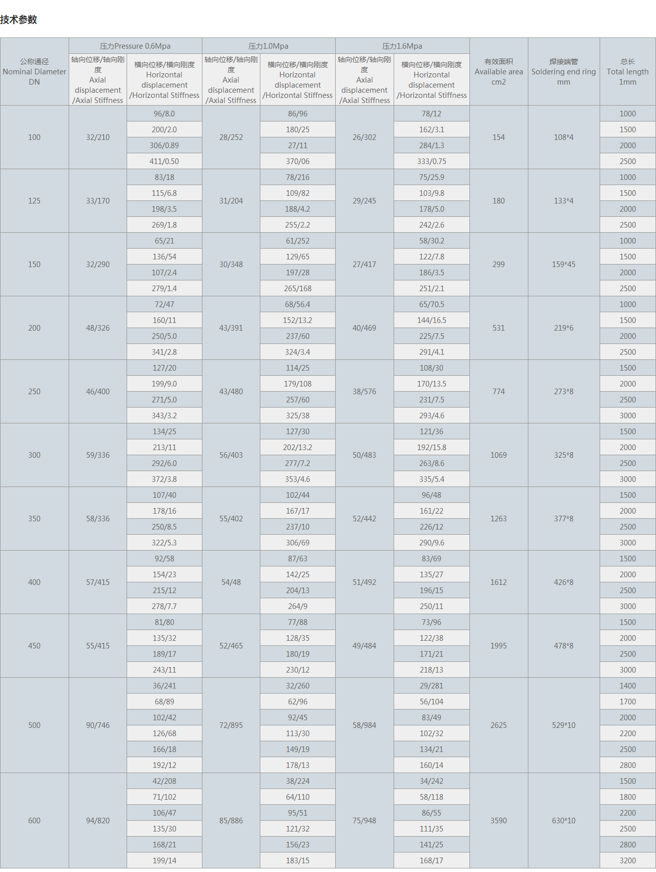 軸向位移/軸向剛度 Axial displacement /Axial Stiffness |