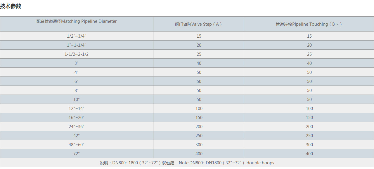 | 說明:DN800~1800(32″~72″)雙包箍 Note:DN800~DN1800(32″~72″) double hoops | ||