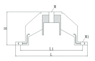 JGD型橡膠剪切隔振器是由內(nèi)、外鋼套和中間的合成橡膠組成,經(jīng)硫化呈中空圓錐體,橡膠部分受剪切力。固有頻率較低;變型范圍較大;結(jié)構簡單、安裝方便??芍苯影惭b在機座下,也可用地基螺栓固定安裝,使用安全可靠;